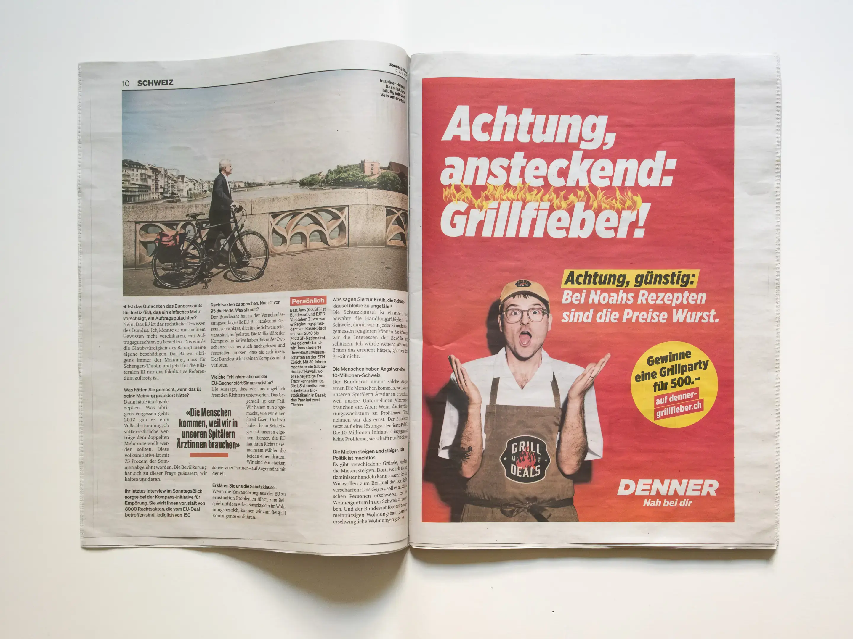 Denner lanciert diesen Sommer zum ersten Mal eine gross angelegte Grillkampagne. Der Schweizer Discounter fordert eine auffällige Idee, bei welcher der Influencer Noah Bachofen die Hauptrolle spielen soll.