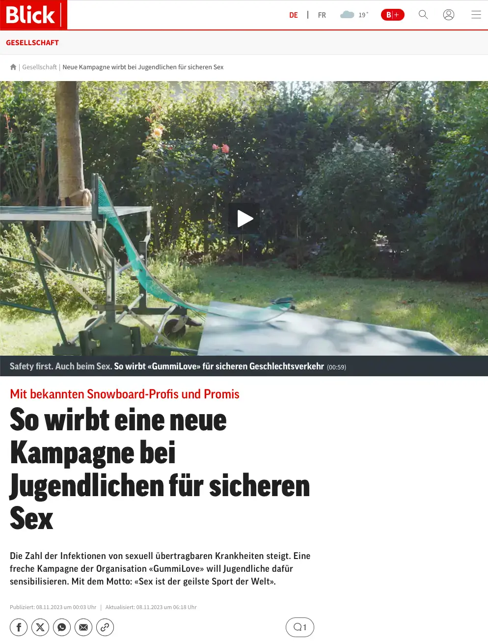 Der Hauptfilm ging schnell viral und wurde sowohl vom Blick wie auch vom 20min aufgegriffen. In den Berichten wurden die Gründer:innen von GummiLove über ihre Aufklärungsarbeit interviewt. Sämtliche 50’000 Info-Kits wurden von den Jugendlichen bestellt.